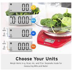 Giới thiệu Cân điện tử thực phẩm Etekcity có kèm bát - màu đỏ (Hàng Đức)