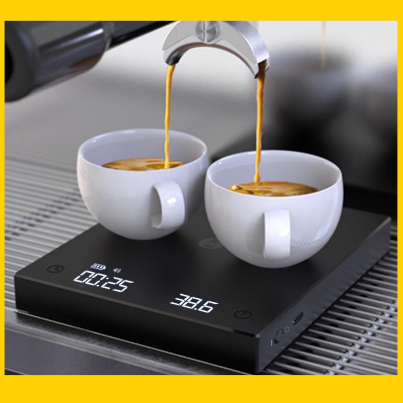 Điểm nổi bật của cân là chế độ autotiming cho phép tự động đếm giây khi có dòng chảy, cực kì tiện tích khi bạn pha Espresso hay Pour over. (Nhấn liên tục phím bấm giờ khoảng 6s để chuyển sang chế độ này)