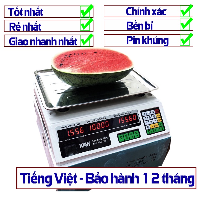 ✔️Cân điện tử tính tiền 2 mặt loại 40Kg công nghệ Hàn Quốc - Dễ dàng sử dụng, tính tiền chính xác - Bảo hành 12 Tháng