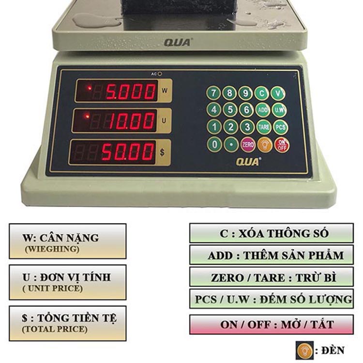 ✅ Các chức năng chính của Cân điện tử tính tiền 30kg 2 mặt QUA 839 Loại Chống Nước 100%.
