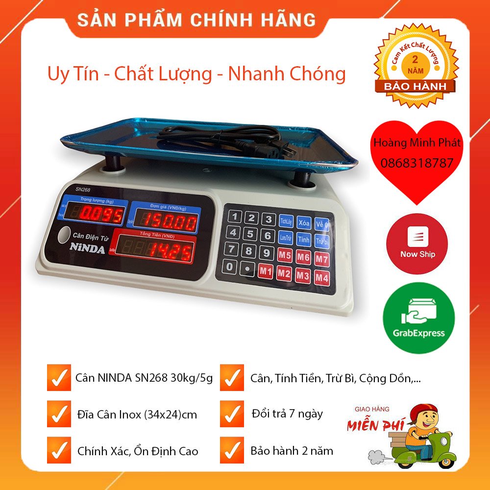 CÂN ĐIỆN TỬ TÍNH TIỀN CAO CẤP 30kg/5g NINDA SN268 HÀNG DÀNH CHO CHUỖI SIÊU THỊ, CỬA HÀNG, NHÀ HÀNG, TẠP HÓA - BH 2 NĂM