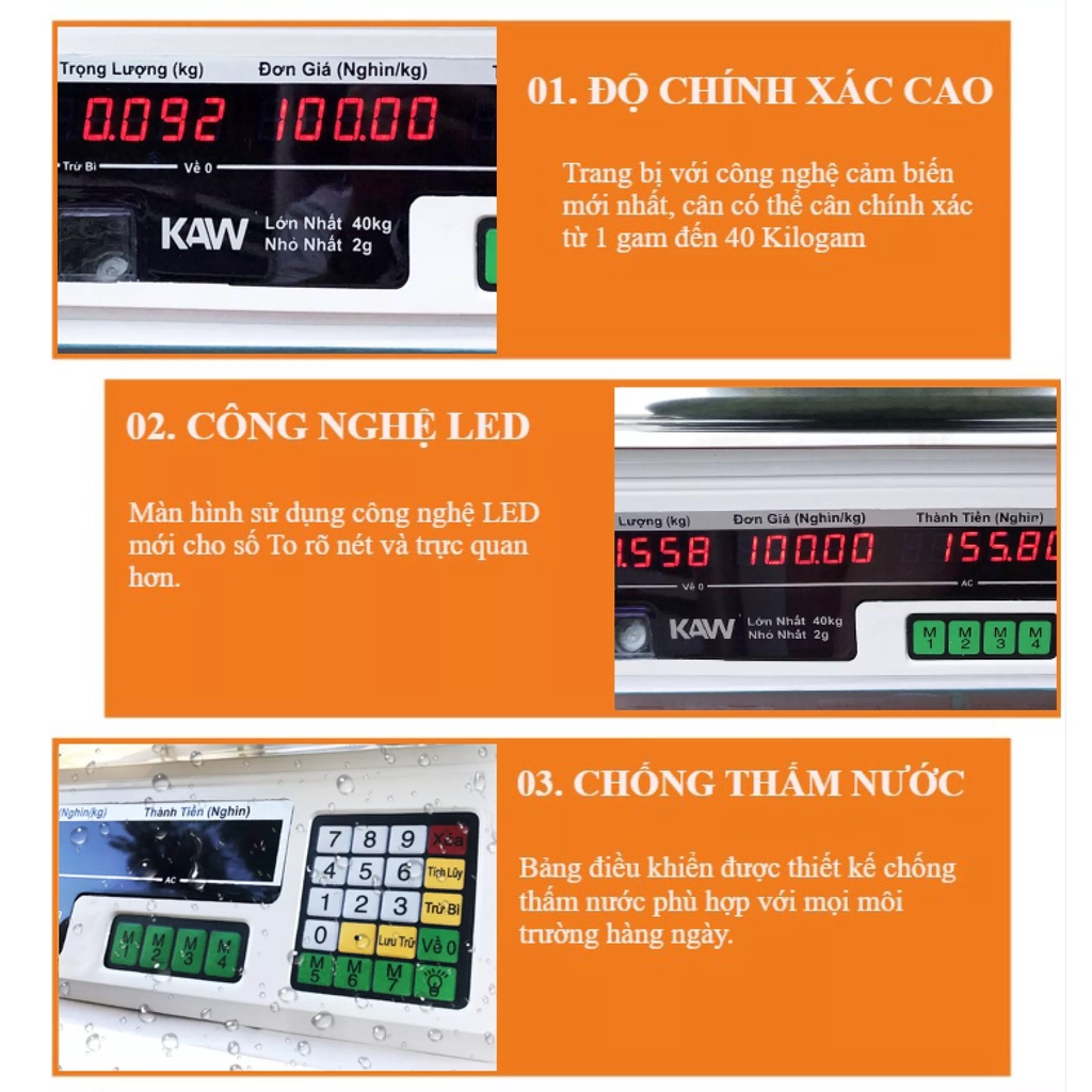 🌳 Có chức năng cân trọng lượng, cân tính tiền, trừ bì, nhập giá, cân trái cây