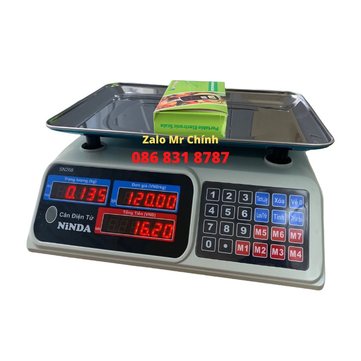 Ninda SN268 có khả năng cân tối đa 30kg với sai số cực nhỏ chỉ 5g. Cân thiết kế 3 màn hình led màu xanh hiển thị trọng lượng, giá tiền và số tiền người mua phải trả giúp việc bán hàng trở nên dễ dàng hơn.