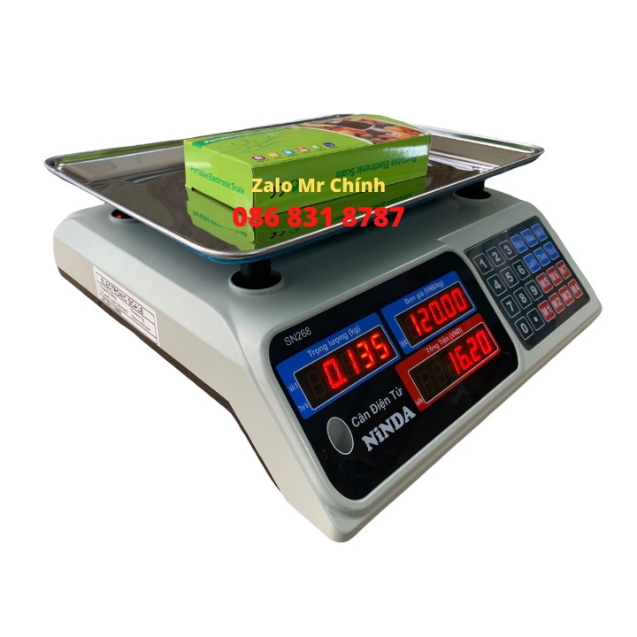 Cân điện tử tính tiền Ninda SN268 thiết kế hiện đại, nhỏ gọn, dễ sử dụng phù hợp cho các siêu thị, cửa hàng bán hoa quả, thịt...