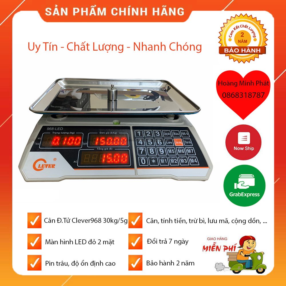 CÂN ĐIỆN TỬ TÍNH TIỀN HOA QUẢ THỰC PHẨM 30kg/5gam Clever 968 BÀN PHÍM TIẾNG VIỆT DỄ DÙNG. MÀN HÌNH LED 2 MẶT