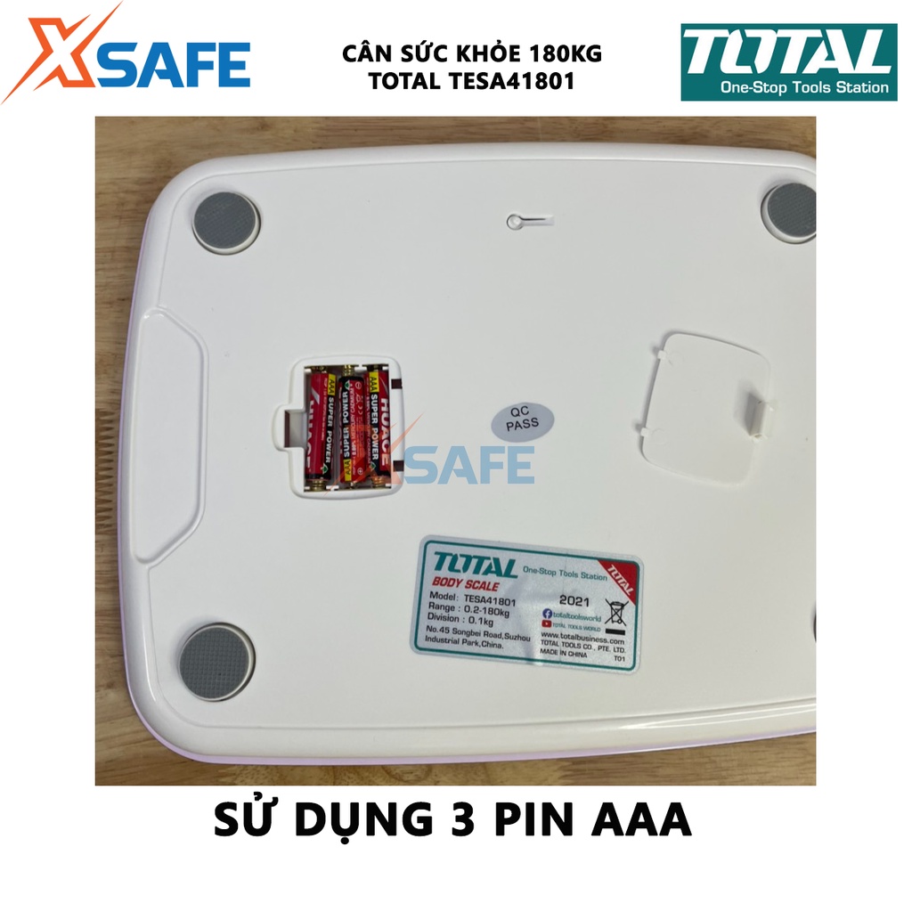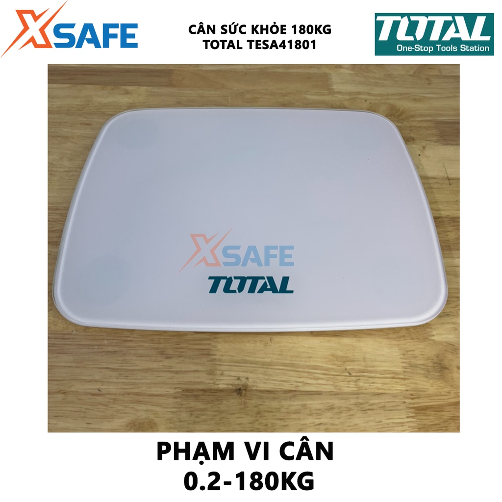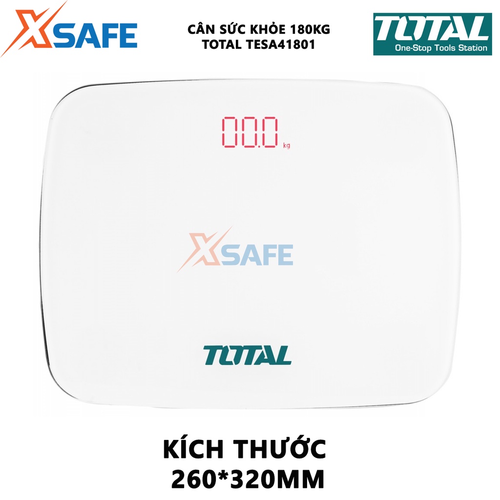 Cân điện tử TOTAL TESA41801 Cân sức khỏe 180kg kích thước 260x320mm, nguồn pin sử dụng 3 pin AAA, phạm vi cân 0.2-180kg