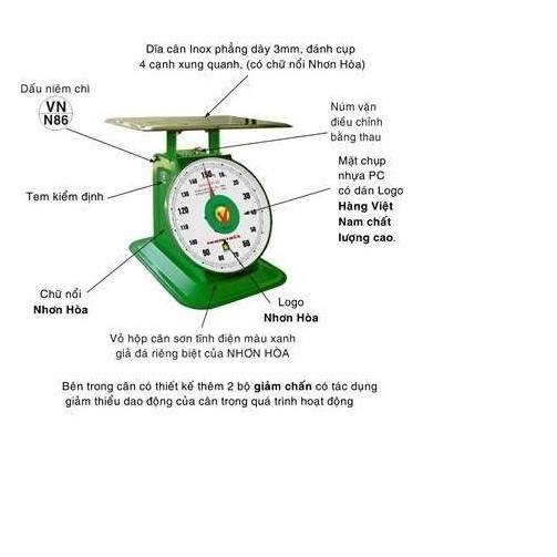 - Cân 2kg Nhơn Hòa được làm từ những chất liệu bền bỉ và chắc chắn, đem lại cho người sử dụng sự an toàn tuyệt đối.