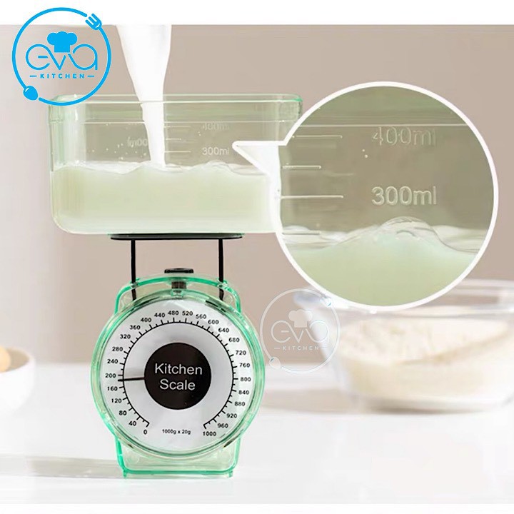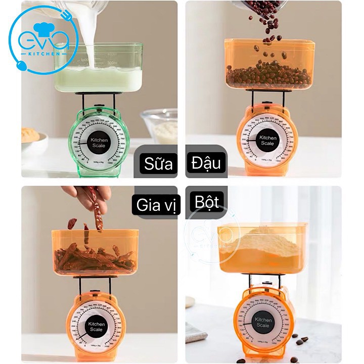 - Công dụng: cân thực phẩm chế biến cho bé hoặc cân nguyên liệu làm bánh... Thiết kế nhỏ gọn nhưng lại thông minh và tiện lợi trong quá trình sử dụng. Cân nhà bếp mini có khả năng cân tối đa 1kg. Vạch chia 20g giúp mẹ đo lường chính xác và dễ dàng mức thực phẩm cần sử dụng. Đĩa cân dạng hộp giúp thực phẩm không bị rơi ra ngoài khi cân. Trên đĩa cân cũng có vạch chia thể tích giúp mẹ đo lường dễ dàng hơn. Đĩa cân có thể úp lên thân của cân giúp tiết kiệm diện tích khi cất giữ. Mặt kính trong và bền đẹp, không bị lu mờ, khó bị trày xước ,Dễ dàng sử dụng, di chuyển cũng như bảo quản.