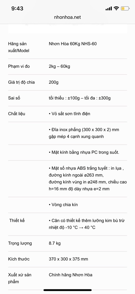 Giới thiệu Cân đồng hồ Nhơn Hòa 60Kg Chính Hãng