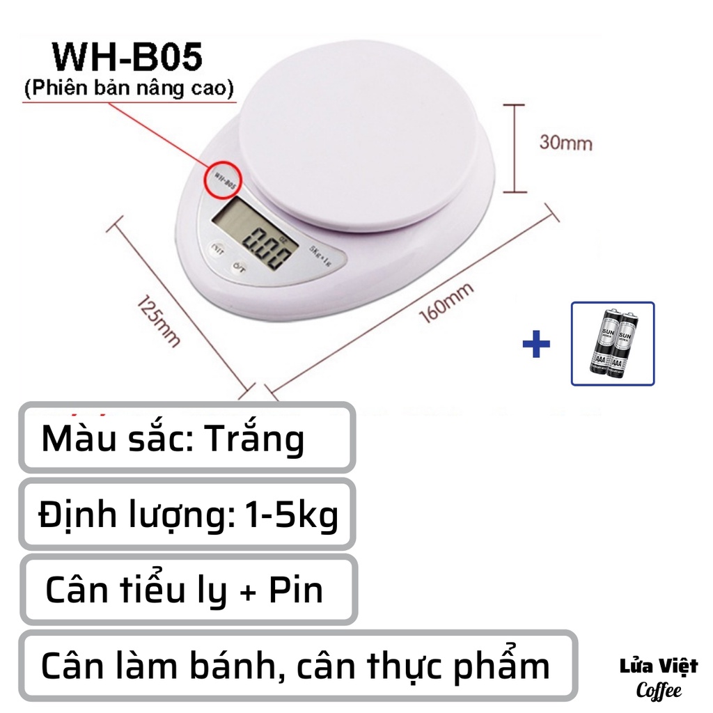 Cân làm bánh mini điện tử nhà bếp định lượng 1-5kg độ chính xác cao làm bánh cao cấp 3kg cân kèm 2 viên pin AA