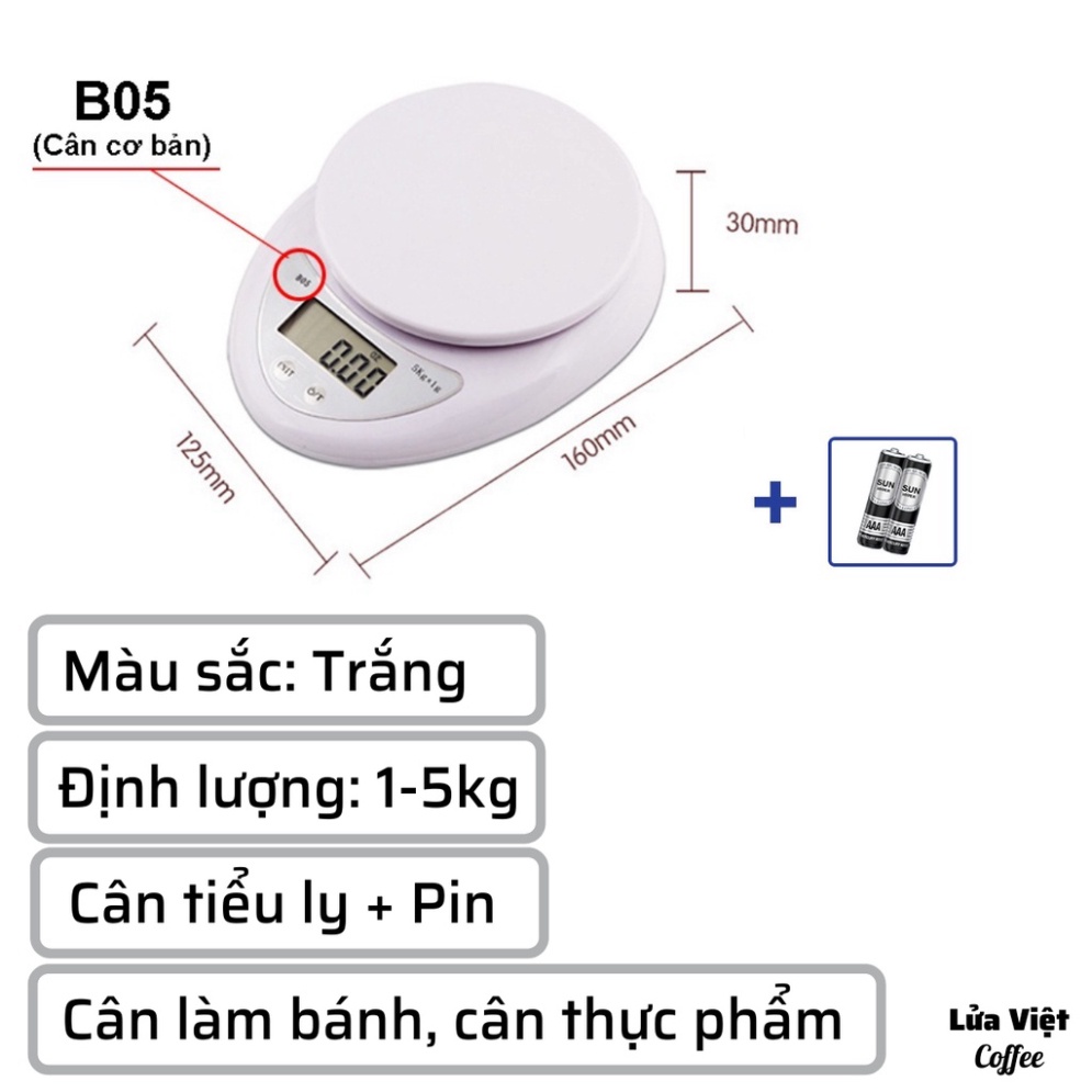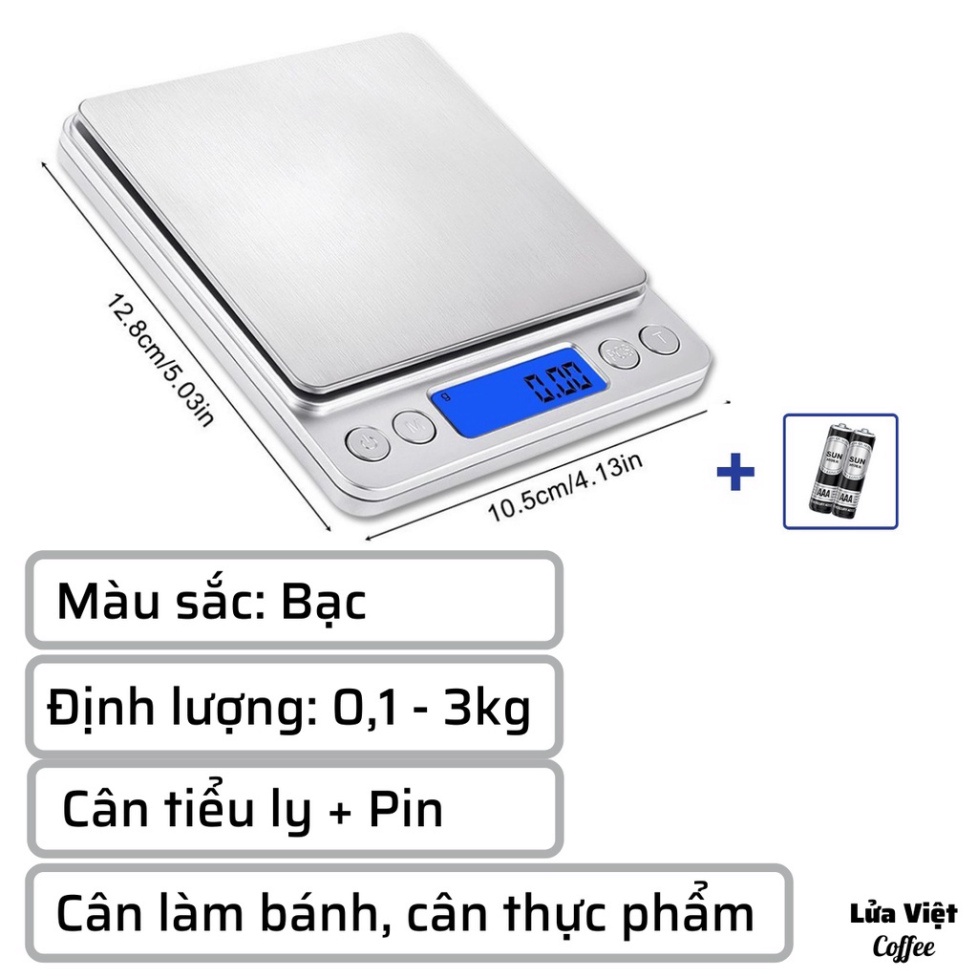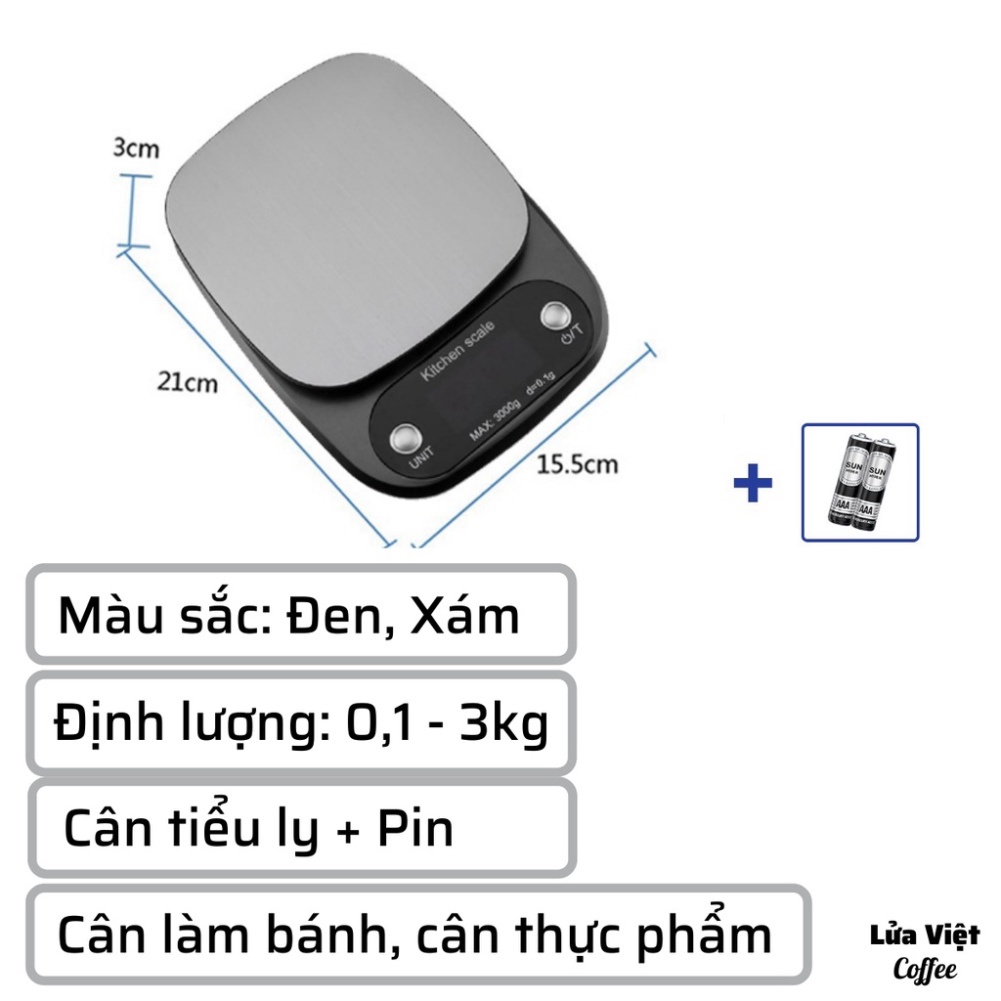 Cân làm bánh mini điện tử nhà bếp định lượng 1-5kg độ chính xác cao làm bánh cao cấp 3kg cân kèm 2 viên pin AA