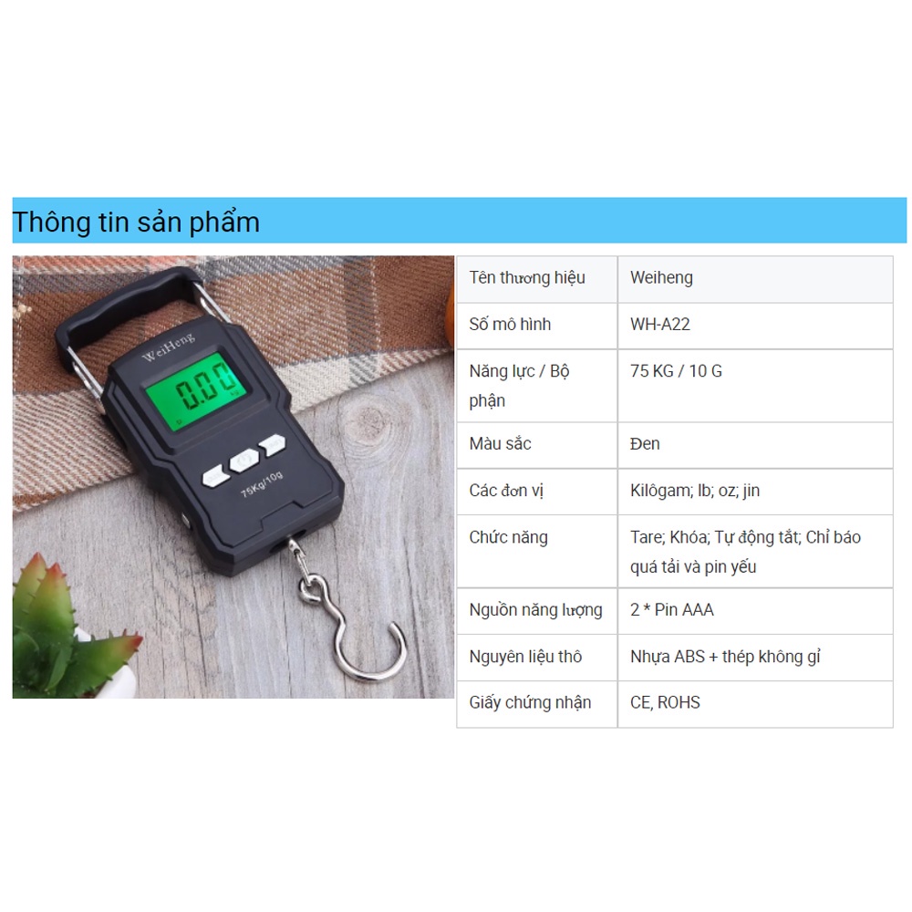 ⏩Cân móc hành lý, đánh cá, thực phẩm cầm tay 75kg KHALIK A22