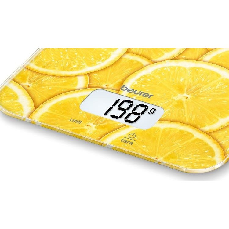 -Cân nhà bếp Beurer KS19 với thiết kế màu chanh tươi mát.