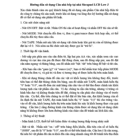 Hướng dẫn sử dụng Cân nhà bếpTrước khi sử dụng vui lòng đọc kỹ hướng dẫn sử dụng để có thể sử dụng sản phẩm tốt hơn.