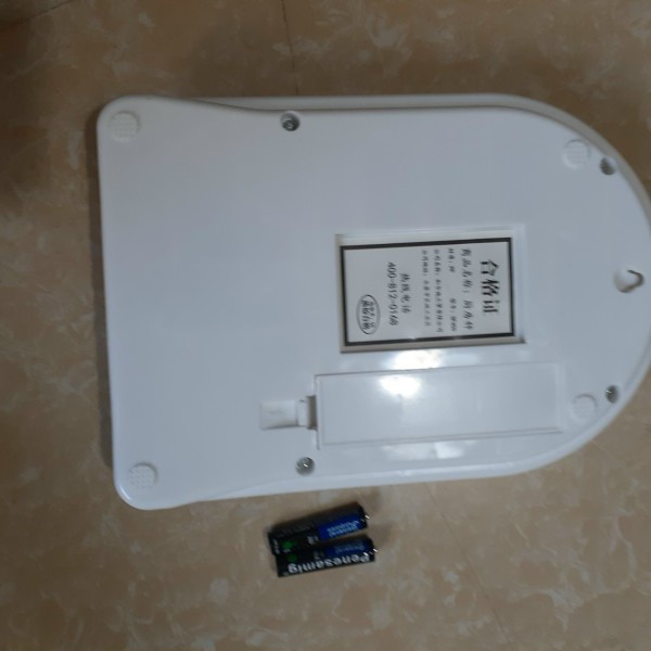 - Mở nắp pin phía sau của cân điện tử, lắp hai pin AA vào, xác nhận xem các cực dương và cực âm của pin đã được đặt đúng chưa, sau đó đóng nắp pin; sau đó đặt cân nằm ngang và thăng bằng, sau đó nhấn nút "bật / tắt" trên bảng để bật và tắt cân.