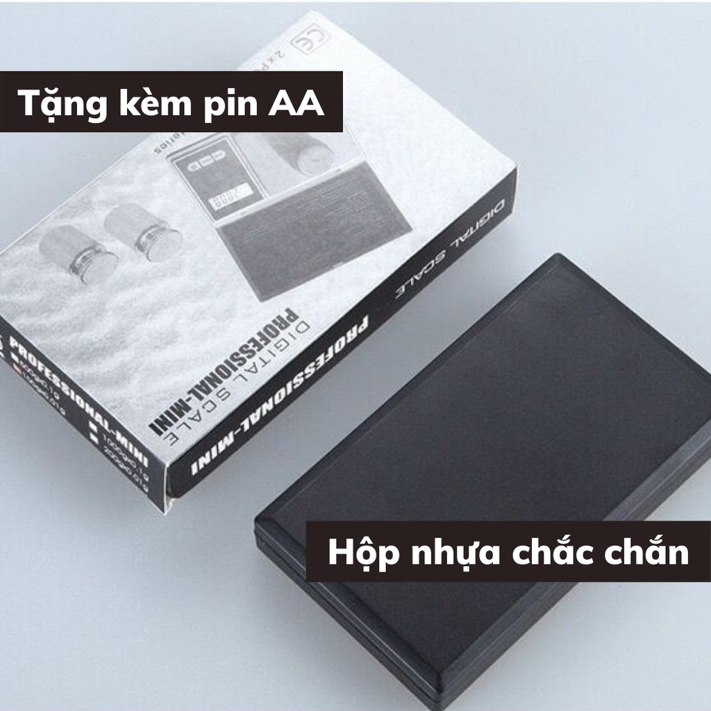 Cân nhà bếp điện tử mini có nắp làm bánh tiểu ly cân vàng bạc đá quý định lượng 0,01g - 200g tặng kèm pin AA
