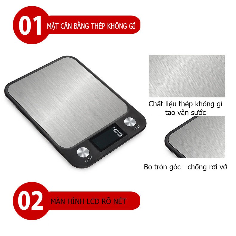 Nhà cửa & Đời sống > Dụng cụ nhà bếp > Cân nhà bếp || Cân nhà bếp điện tử nút cảm ứng chính xác cao, có chức năng trừ bì bằng thép không gỉ - Loại 5kg - 10kg /1g - CX-SERIESCòn hàng