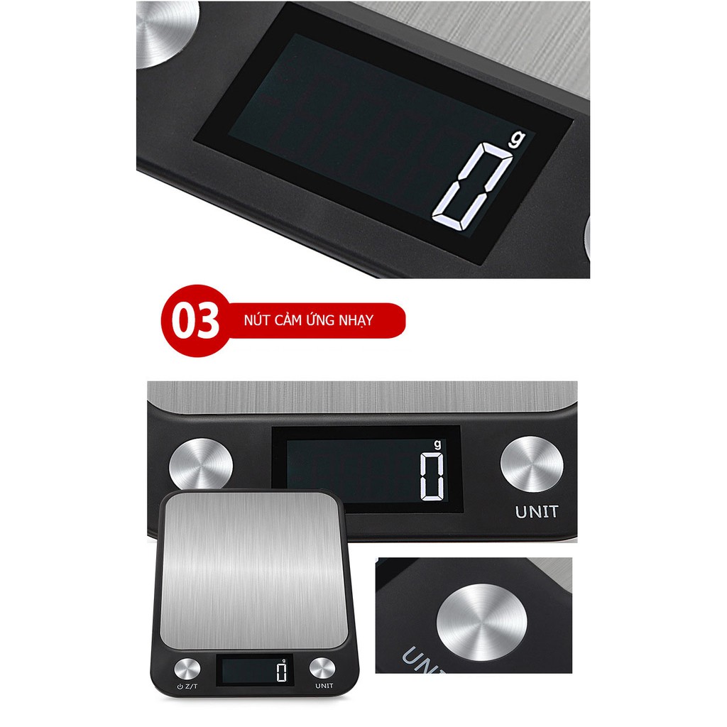 Cân nhà bếp điện tử nút cảm ứng chính xác cao, có chức năng trừ bì bằng thép không gỉ - Loại 5kg - 10kg /1g - CX-SERIES