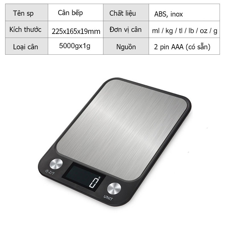 ● Đơn vị trọng lượng: g, oz, lb, tl, kg, ml nước, ml