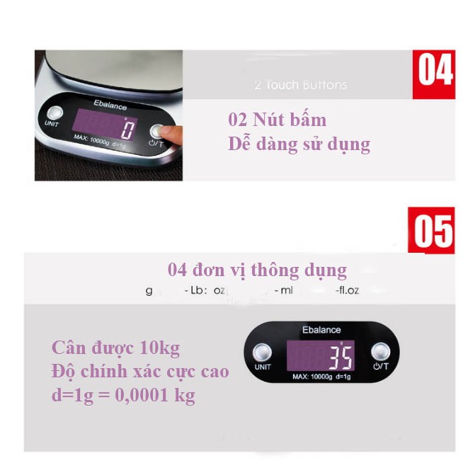 Giới thiệu Cân nhà bếp Ebalance 10kg cao cấp chuẩn CE màn hình LED