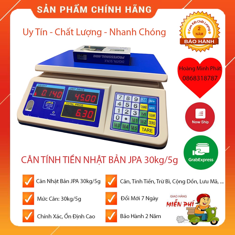 Cân Nhật Bản JPA Điện Tử Tính Giá Tiền Hàng 30kg/5g Cao Cấp - Chính Xác Cao - Bảo Hành 2 Năm