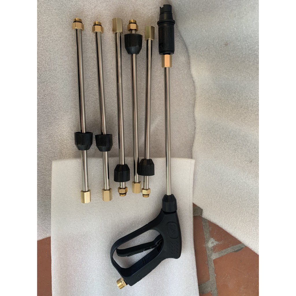 - Ống nối dài có chiều dài giúp bạn dễ dàng luôn sâu vào các vị trí khó với tới & tạo 1 khoảng cách nhất định giữa người sử dụng máy bơm xịt rửa xe với vật cần rửa để tránh bắn nước & đảm bảo an toàn hơn.
