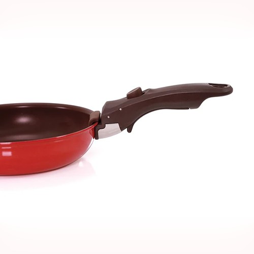 Thao tác khớp với thành nồi chảo bằng cách bóp lẫy phía dưới và tháo cán dễ dàng bằng cách gạt nút phía trên.