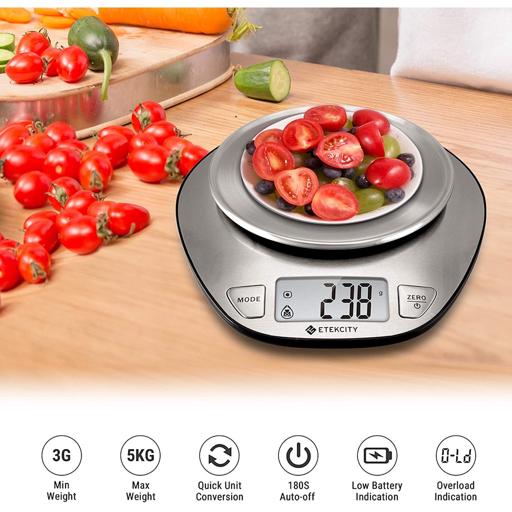 Cân nhà bếp ETEKCITY không có khay đựng-Đo chính xác với 4 cảm biến, cân cho trọng lượng chính xác; cân từ 1g đến 5kg.