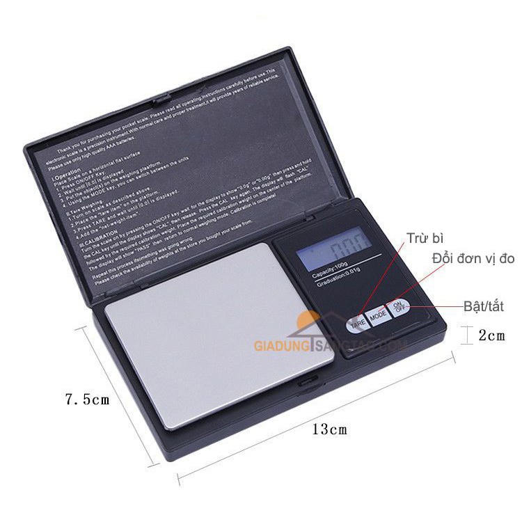 Loại 500g/0.01g: cân được tối đa 500g sai số 0.01