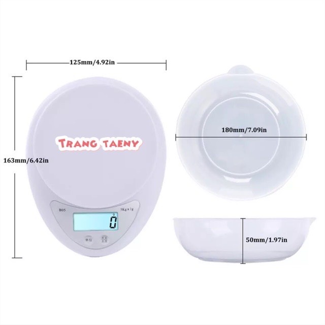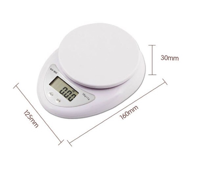 Cân Tiểu Ly Để Bàn 5kg– Kích thước: 163x127x33mm (L x W x H).