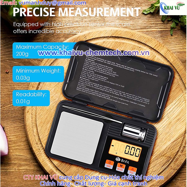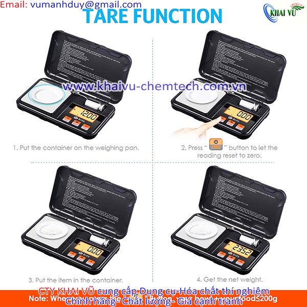 Công ty KHAI VŨ chuyên cung cấp Cân tiểu ly điện tử bỏ túi 200g / 0.01g tặng kèm quả cân 50g