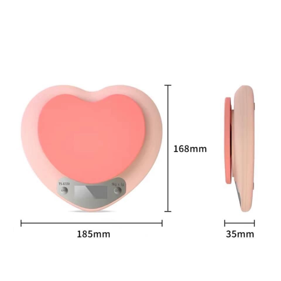 Cân Tiểu Ly Điện Tử, Cân Chia Thực Phẩm Hình Trái Tim, Cân Mini 5Kg màu Hồng Siêu Xinh