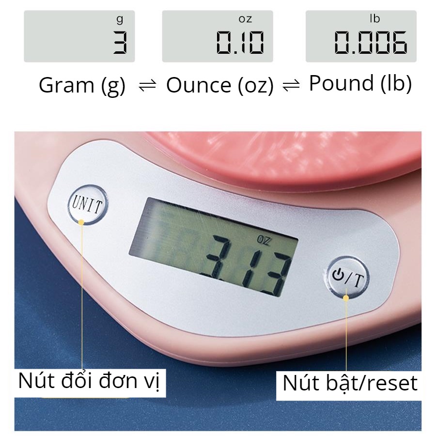 Cân 1g – 5kg: Cân tối thiểu 1g, cân tối đa 5kg (Miễn phí đổi trả 7 ngày)