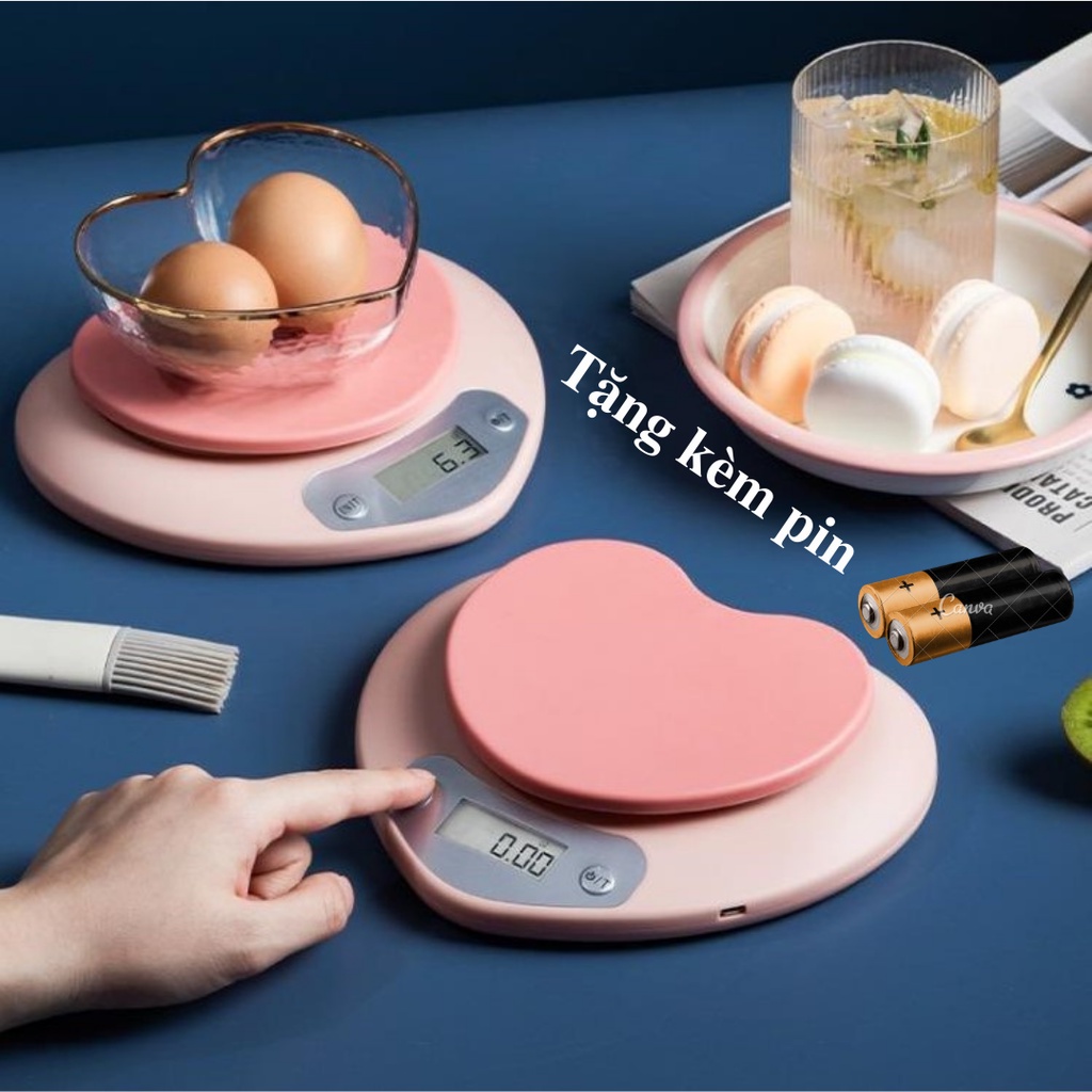 Cân tiểu ly điện tử độ chính xác cao định lượng 1g - 5kg dùng trong làm bánh nấu ăn nhà bếp hình trái tim đáng yêu