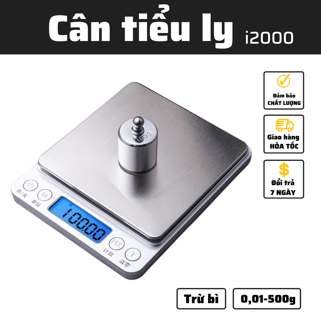 + Cân 0,1g – 2kg: Cân tối thiểu 0,1g, cân tối đa 2kg ( Miễn phí đổi trả 7 ngày )