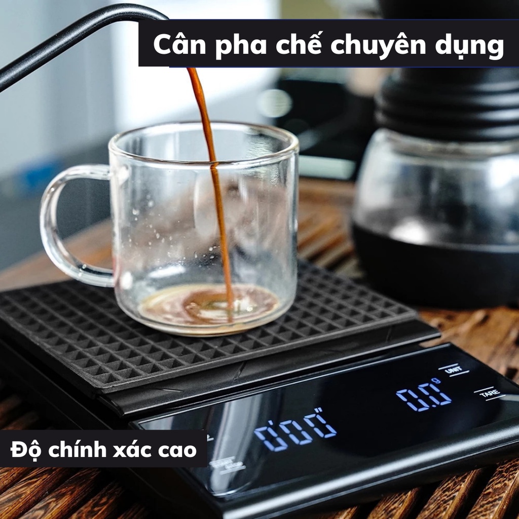 Cân tiểu ly điện tử mini pha chế định lượng 0,1-3kg pha cà phê nguyên chất cân tiểu li bấm giờ tặng kèm 3 viên pin AA