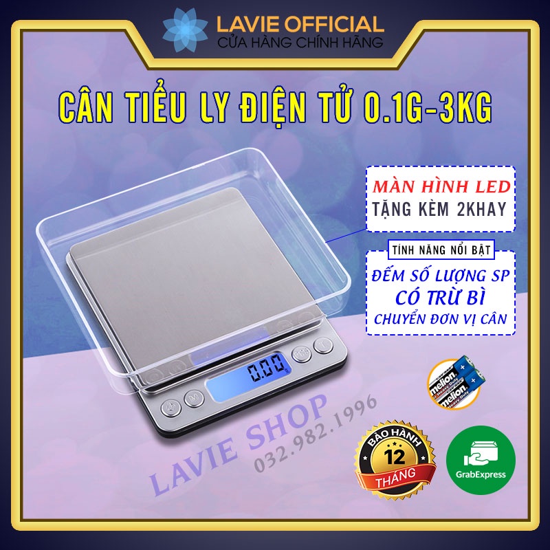 Cân Tiểu Ly Điện Tử Nhà Bếp Độ Chính Xác Cao Định Lượng 0.1g - 3kg, Cân Tiểu Ly Dùng Làm Bánh, Cân Khẩu Phần Ăn BH 12T