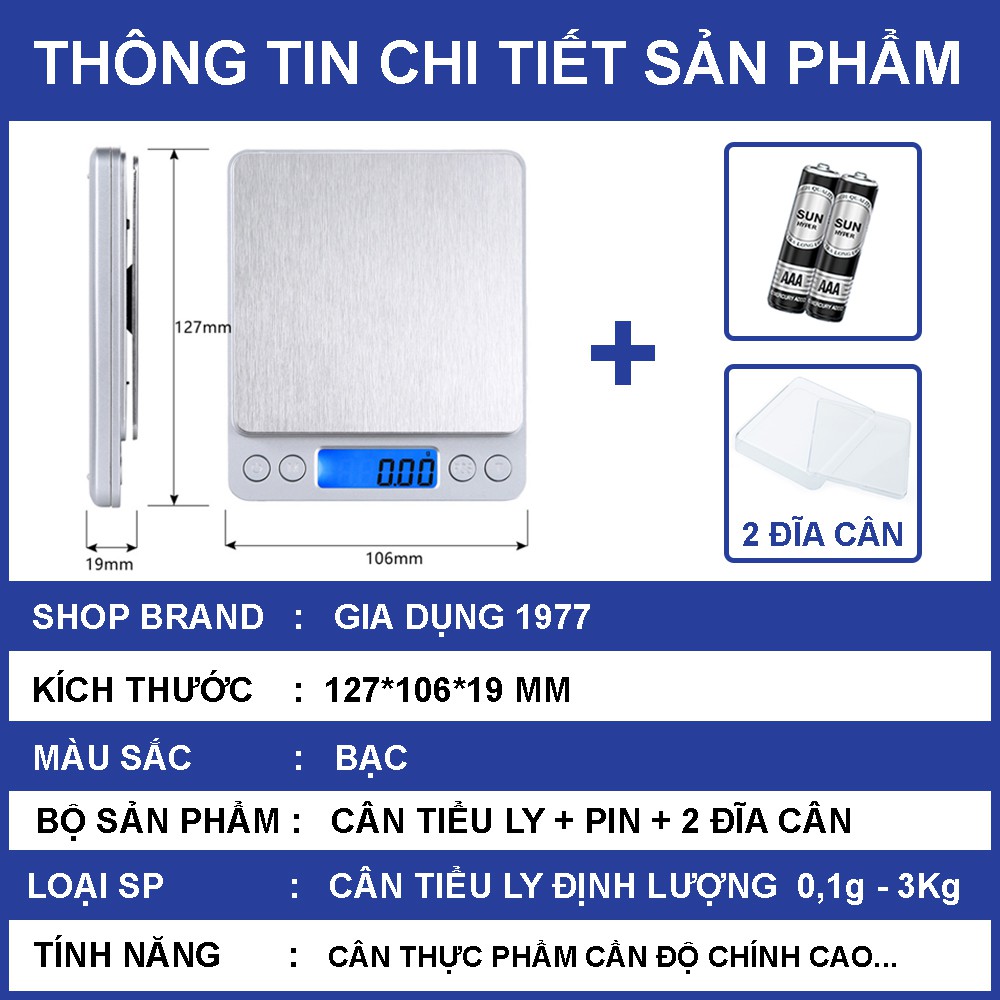 Thông tin chi tiết sản phẩm Cân tiểu ly điện tử nhà bếp mini định lượng 1g - 5kg: