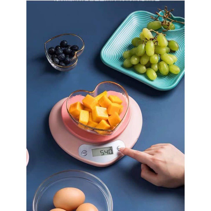 Cân Tiểu Ly Điện Tử Nhà Bếp 5Kg Hình Trái Tim, Cân Chia Thực Phẩm Tiện Lợi