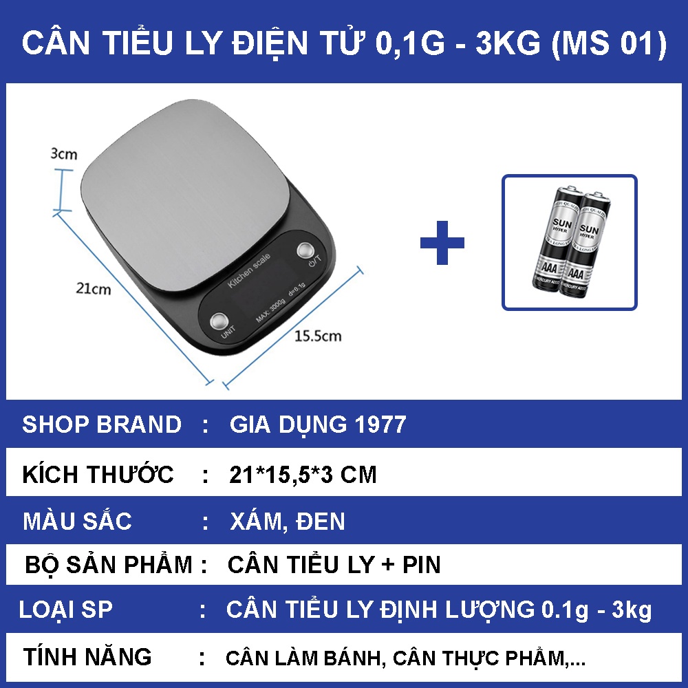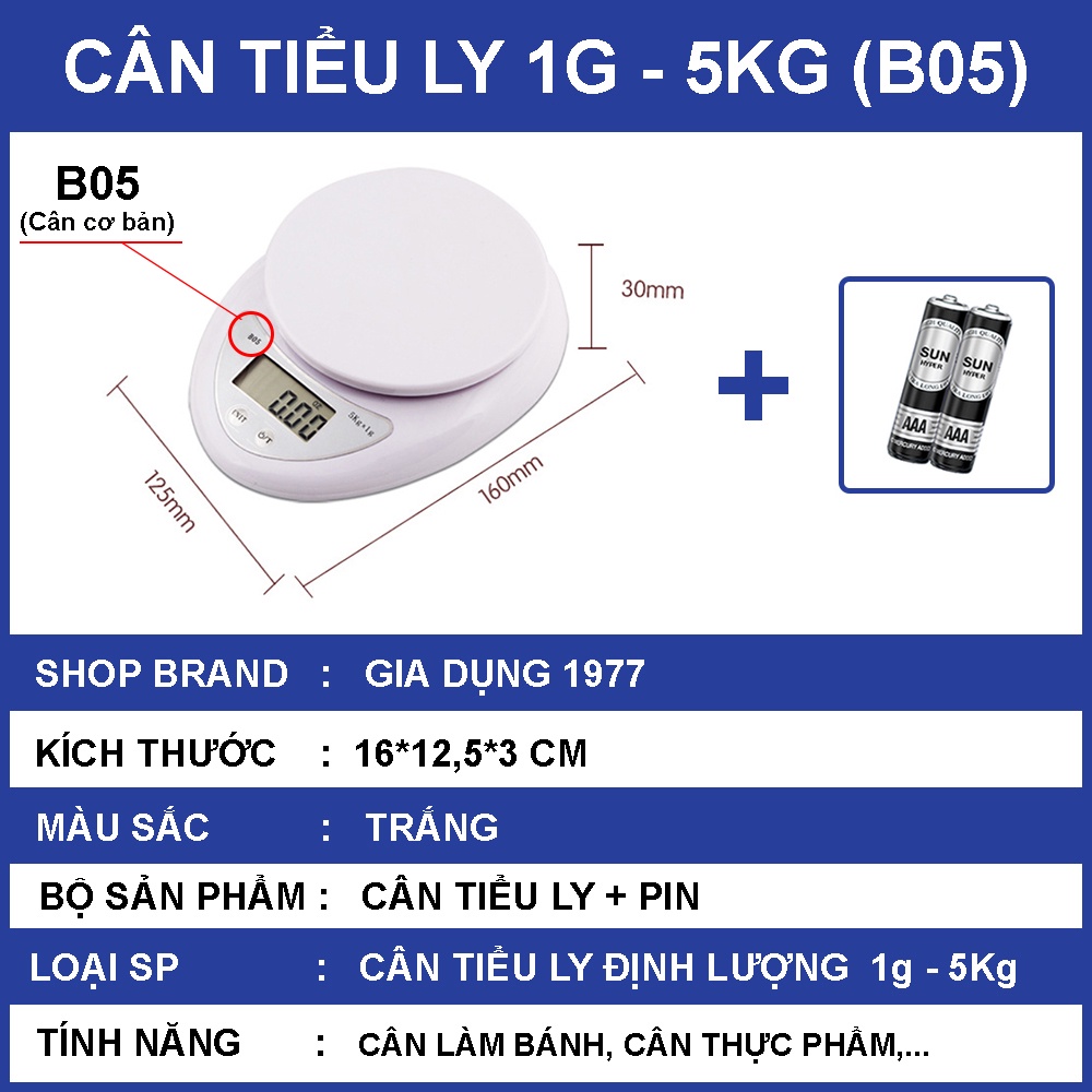Thông tin chi tiết sản phẩm Cân tiểu ly điện tử nhà bếp mini định lượng 1g - 5kg: