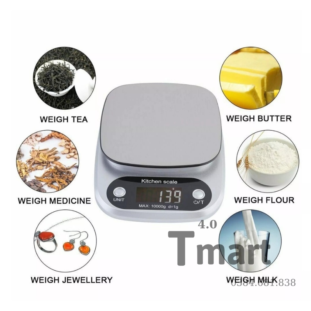 Cân tiểu ly điện tử nhà bếp mini định lượng 1g - 5kg, làm bánh độ chính xác cao - Bmart4.0Bmart4.0 CAM KẾT: