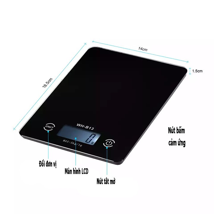 Thông số kỹ thuật✔ Cân Điện Tử Mini Mặt Kính Cường Lực WH B13