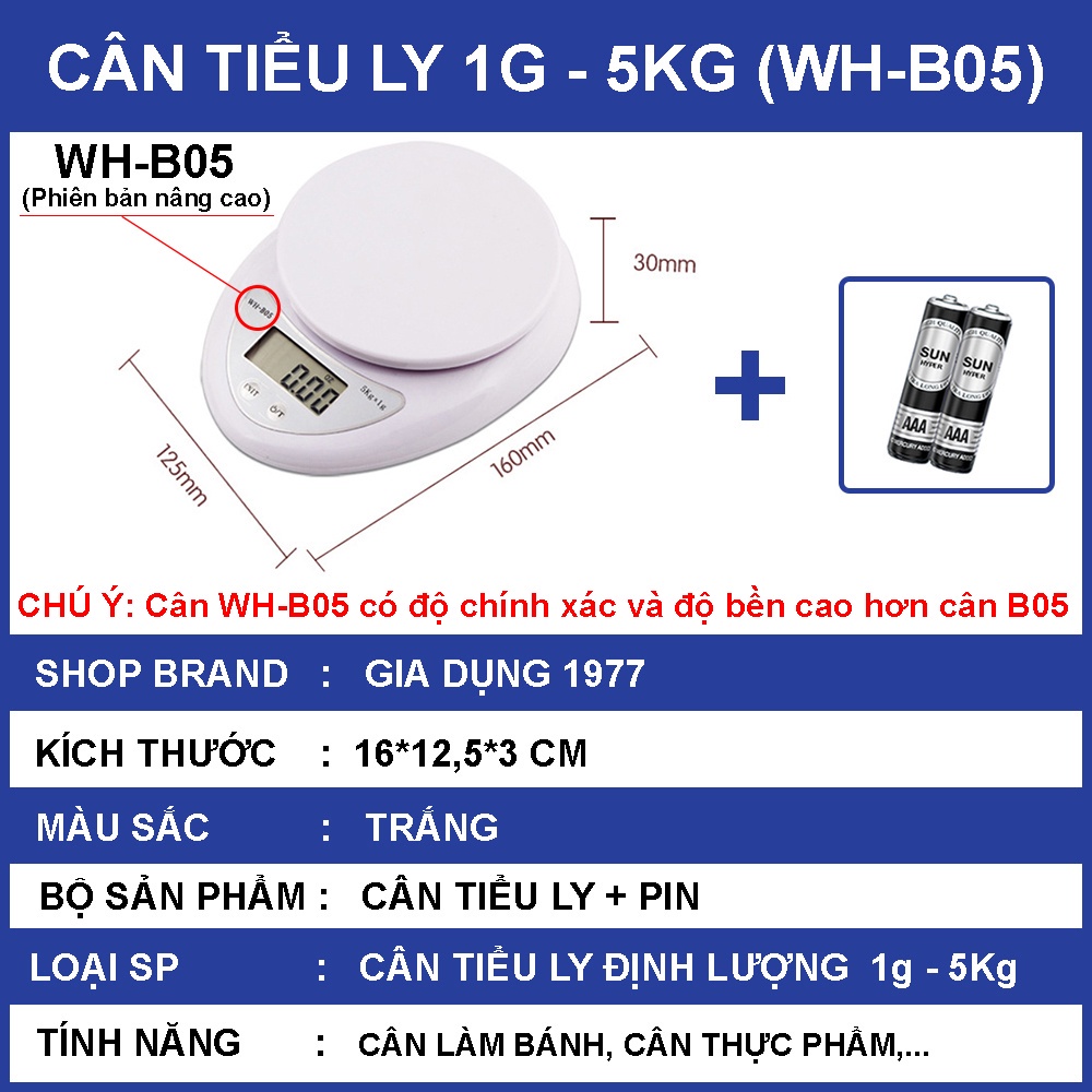 Gia Dụng 1977 cam kết với khách hàng về sản phẩm Cân tiểu ly điện tử nhà bếp mini định lượng 1g - 5kg:
