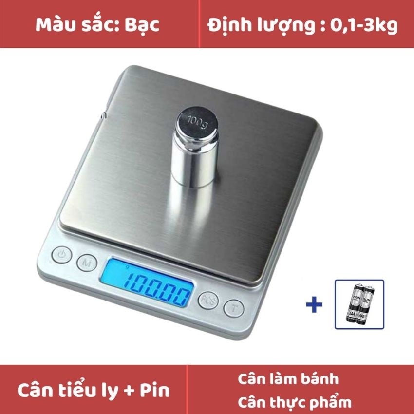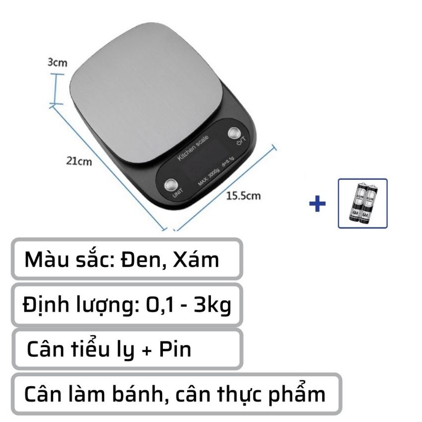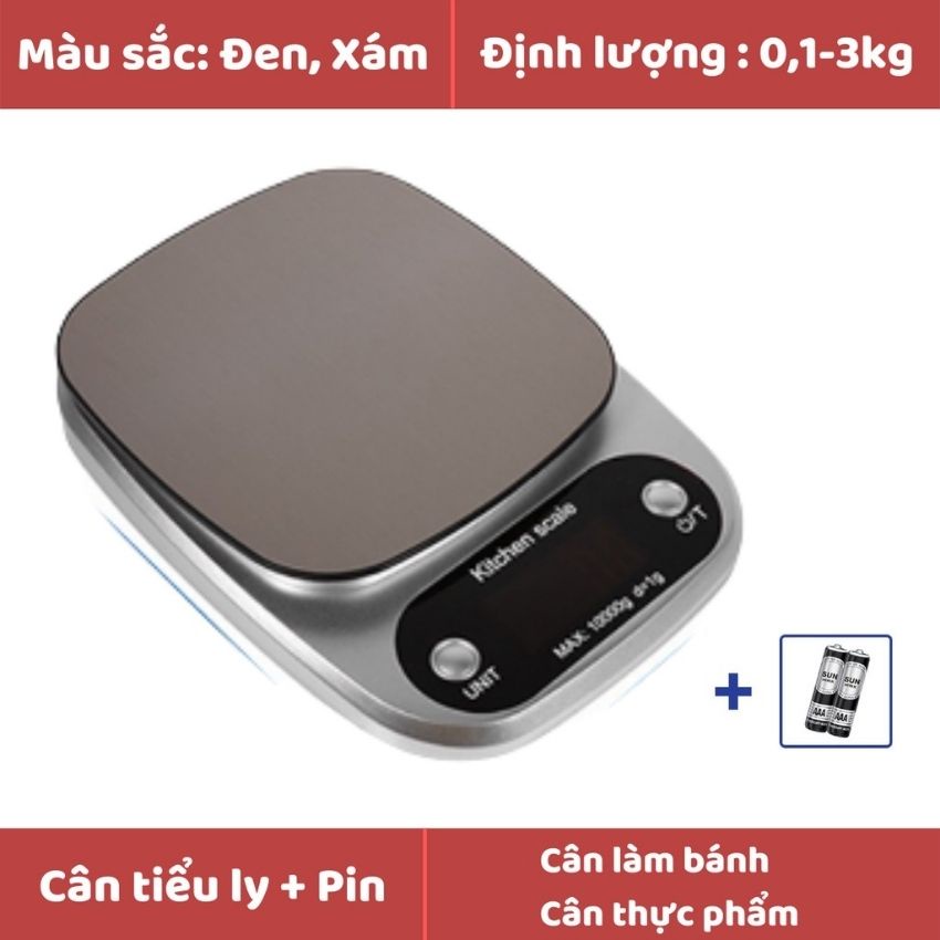 Giới thiệu Cân Tiểu Ly Điện Tử Nhà Bếp Kitchen Định Lượng 0,1-5kg Làm Bánh Cân Cao Cấp Tặng Kèm 2 Viên Pin AA
