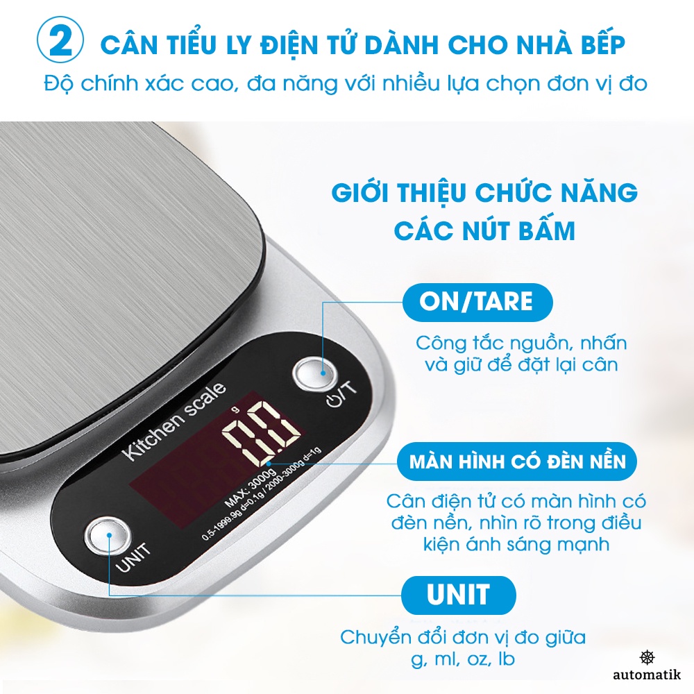 Giới thiệu Cân Tiểu Ly Điện Tử Nhà Bếp, Mini, Cao Cấp - Automatik