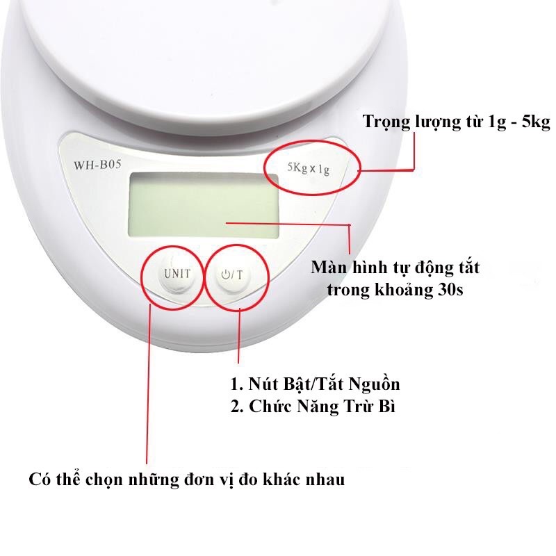 Thông tin chi tiết sản phẩm Cân tiểu ly điện tử nhà bếp mini định lượng 1g - 5kg: