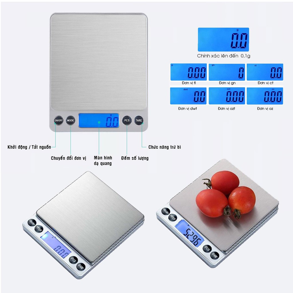 THÔNG TIN SẢN PHẨM: Cân tiểu ly điện tử nhà bếp mini định lượng từ 1g đến 3kg, 5kg, 10kg cân thực phẩm làm bánh chính xác caoCân tiểu ly điện tử nhà bếp Chính xác cực cao.
