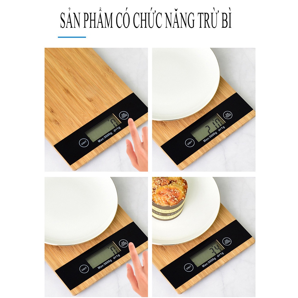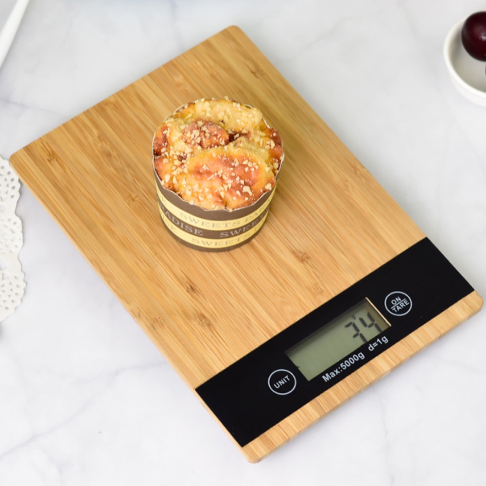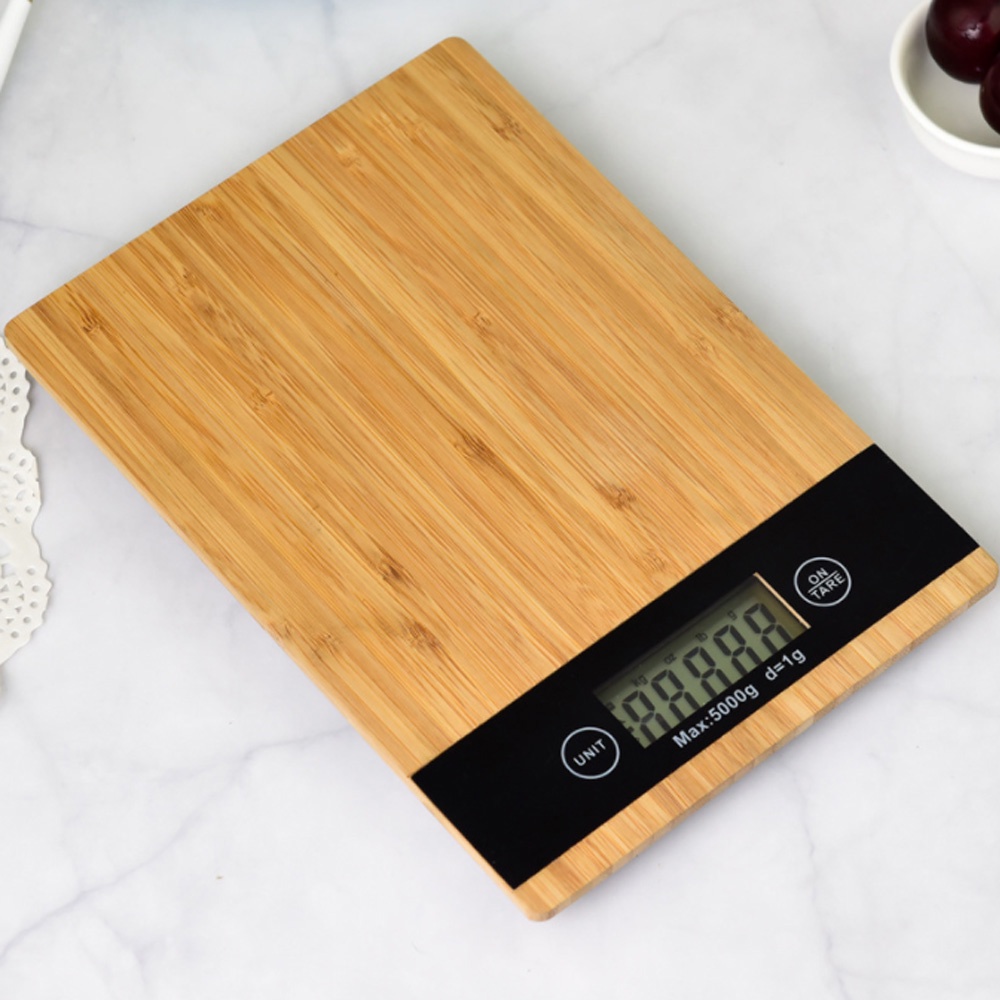 Cân tiểu ly điện tử nhà bếp mặt gỗ KLMG01 định lượng 1g - 5kg làm bánh độ chính xác cao kèm 2 viên pin AAA - cân KHALIK
