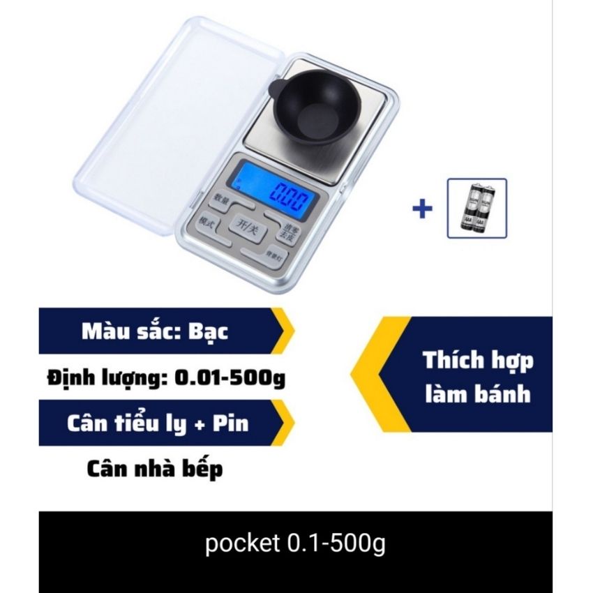 Cân Tiểu Ly Điện Tử Nhà Bếp Làm Bánh Cân Mini Nhỏ Gọn Bỏ Túi Chính Xác Cao Định Lượng 0.01g-500g Cân Vàng Đá Quý- Màu Sắc: Bạc