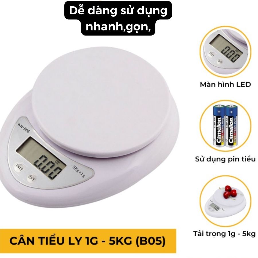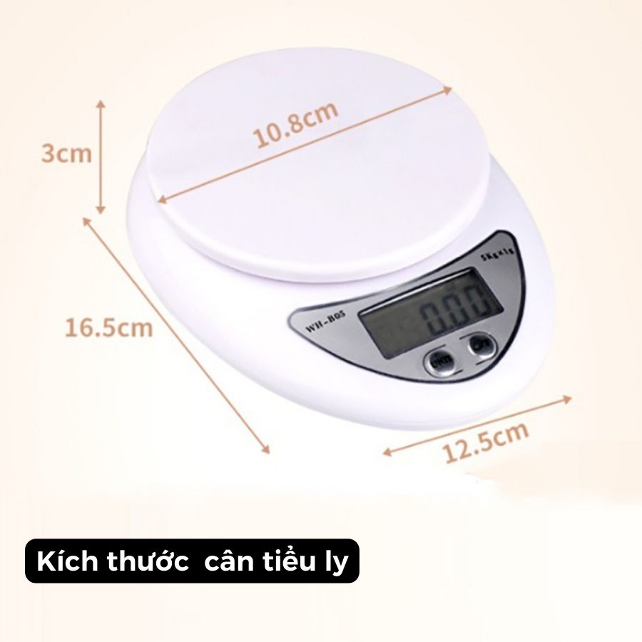 Cân Tiểu Ly Điện Tử Nhà Bếp Mini Định Lượng 1g - 5Kg Làm Bánh Độ Chính Xác Cao Tặng Kèm 2 Pin AAA
